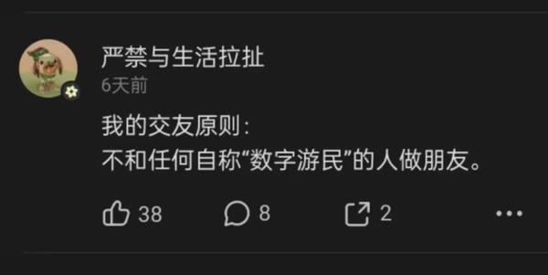 但是,我不能理解为什么有人会公开宣称自己不愿意跟“任何自称数字游民的人”做朋友。